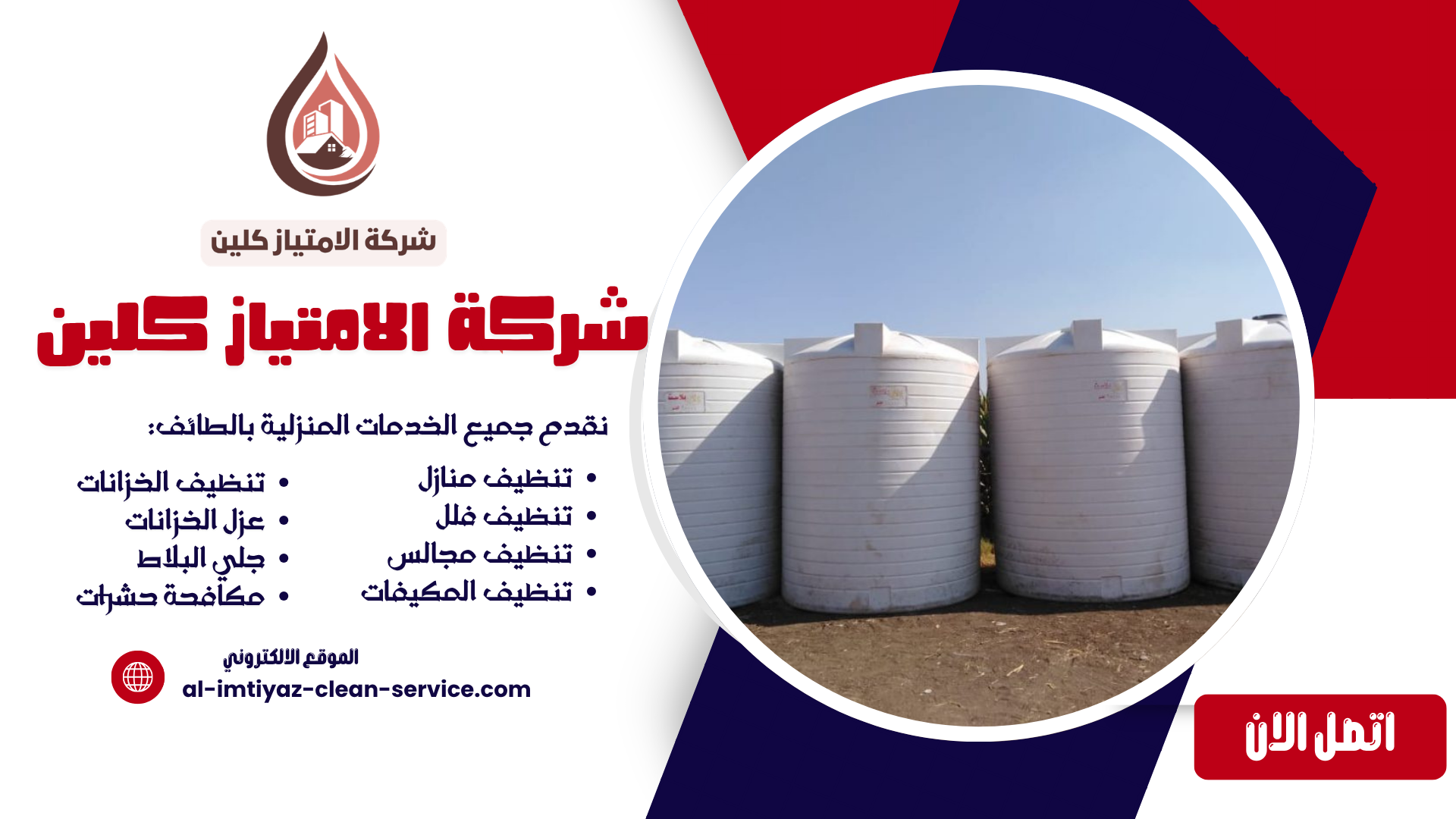 تقدم شركة الامتياز كلين خدمات شركة تنظيف خزانات بالطائف باستخدام أحدث تقنيات التعقيم التي تضمن التخلص من البكتيريا والطحالب والرواسب داخل الخزان، حيث يتم تنظيف الخزان من الداخل والخارج بطريقة احترافية تضمن الحفاظ على جودة المياه وصحة المستخدمين.